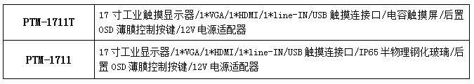 • PTM-1711T工業(yè)觸摸顯示器系列